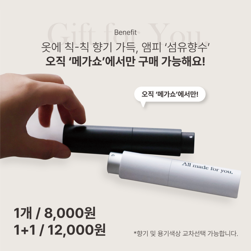 - ✅ 섬유향수는 오직 오프라인에서만 구매 가능한 상품으로 '메가쇼'에서 만나보실 수 있습니다.