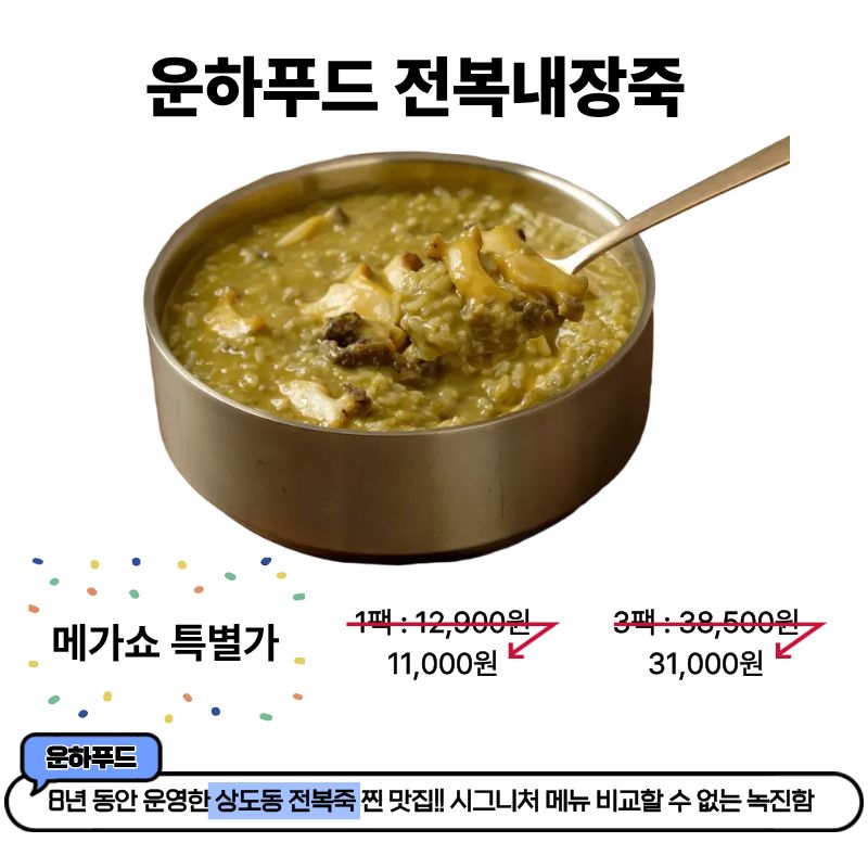 - 살아있는 활전복을 사용하여 영양 가득한 내장을 듬뿍 넣은 [전복 내장죽]