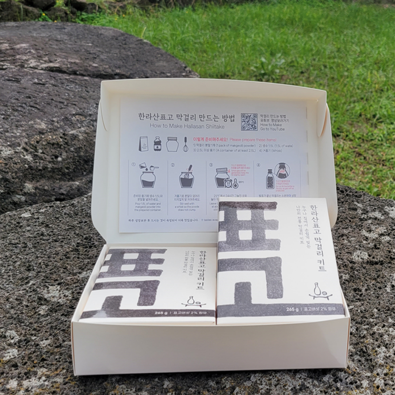 - 청정 제주 한라산 사백오십고지에서 생산한 표고버섯으로 제조 가공한 막걸리 키트