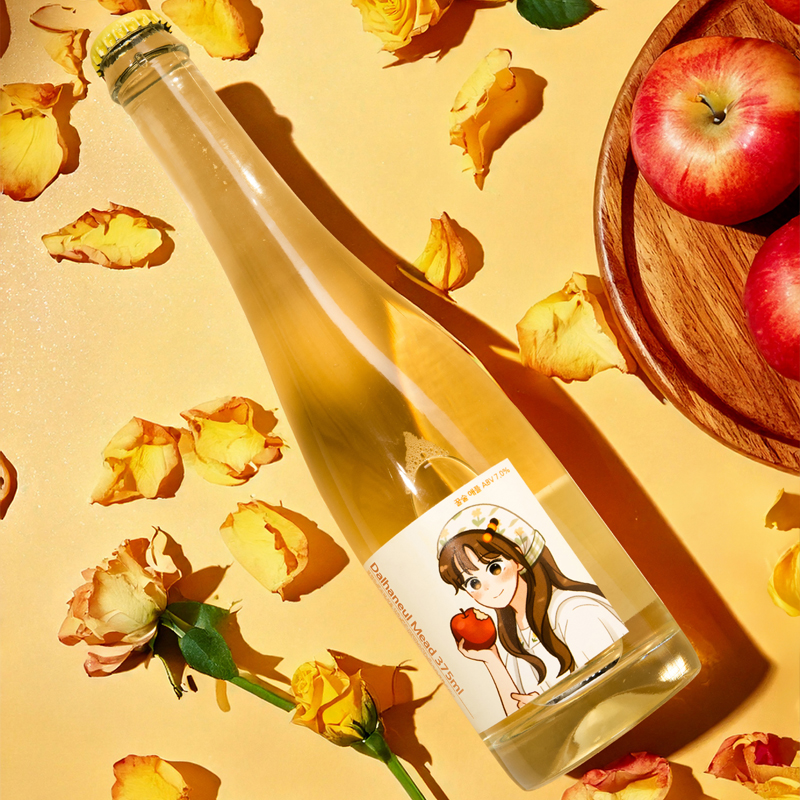 - 강원도 양구산 벌꿀과 사과를 발효해 만든 스파클링 꿀술입니다.