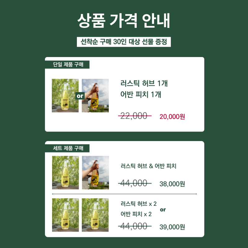 - 세트 구매 시 20,000원 → 15,000원 특별 할인가 이벤트