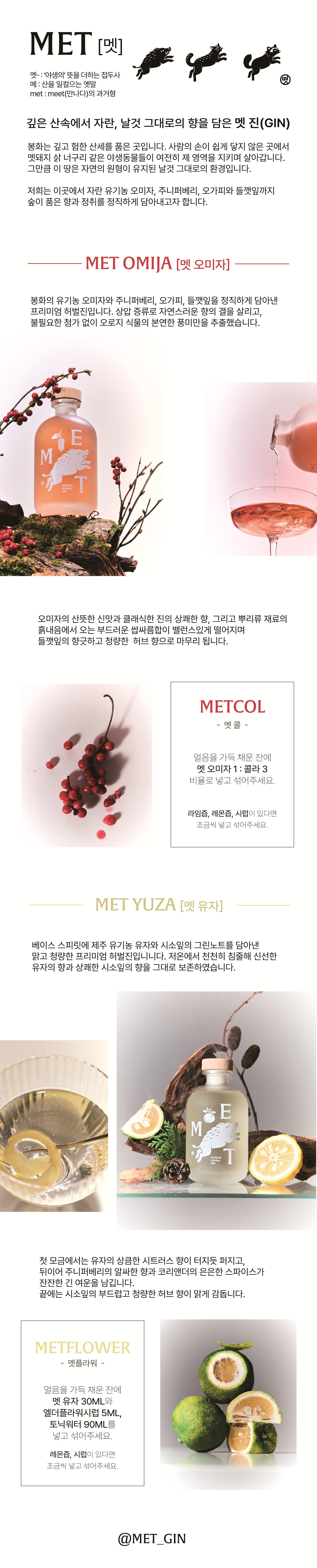 - ‘멧 진(MET GIN)’은 깊은 산의 향을 담은 프리미엄 허벌진입니다.