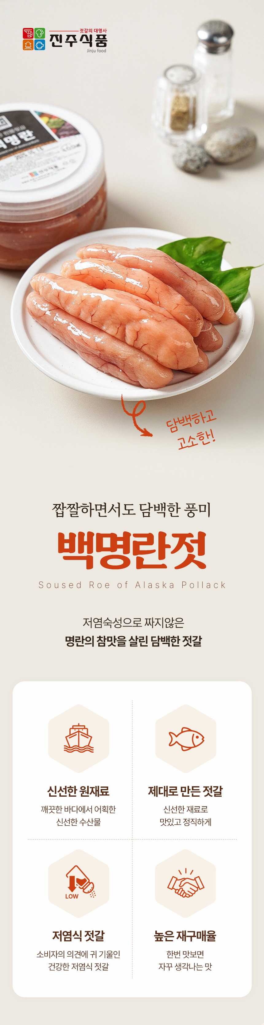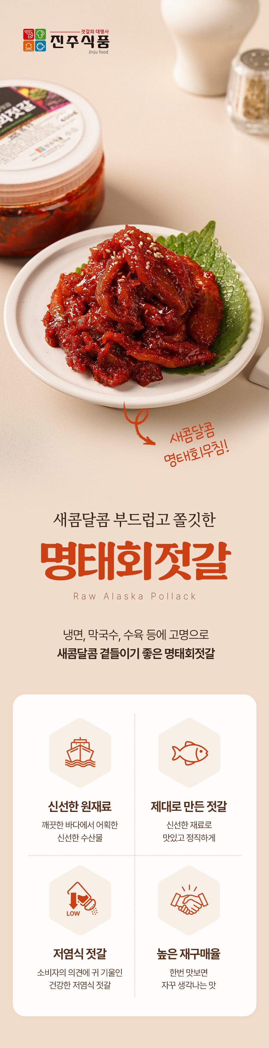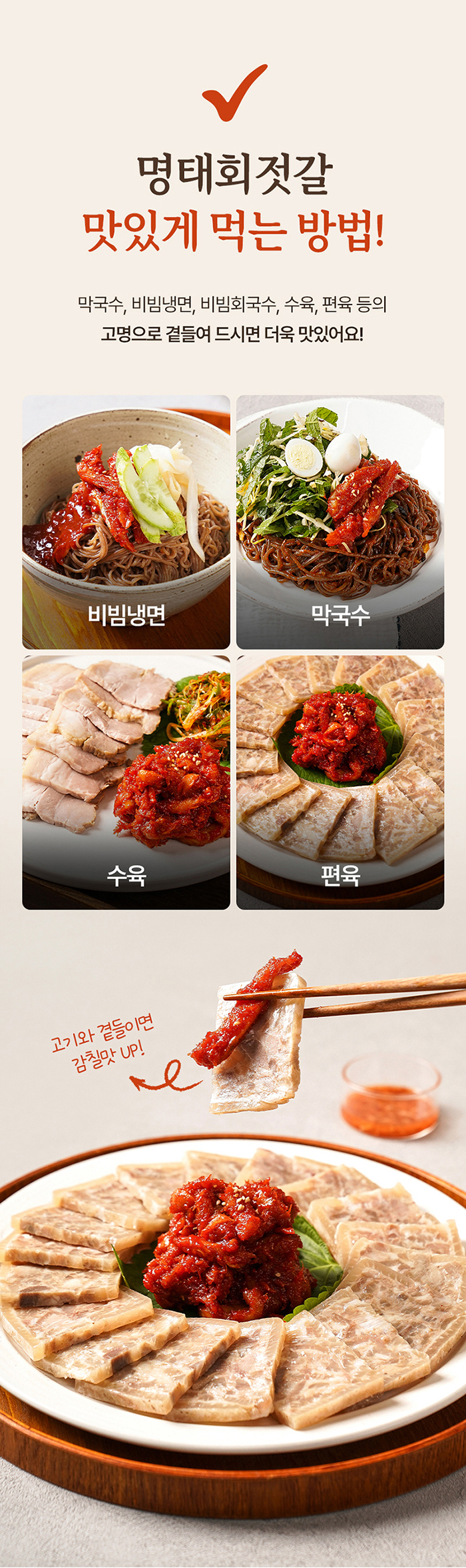 - 쫄깃한 명태살의 새콤달콤하고 비리지 않은 젓갈!