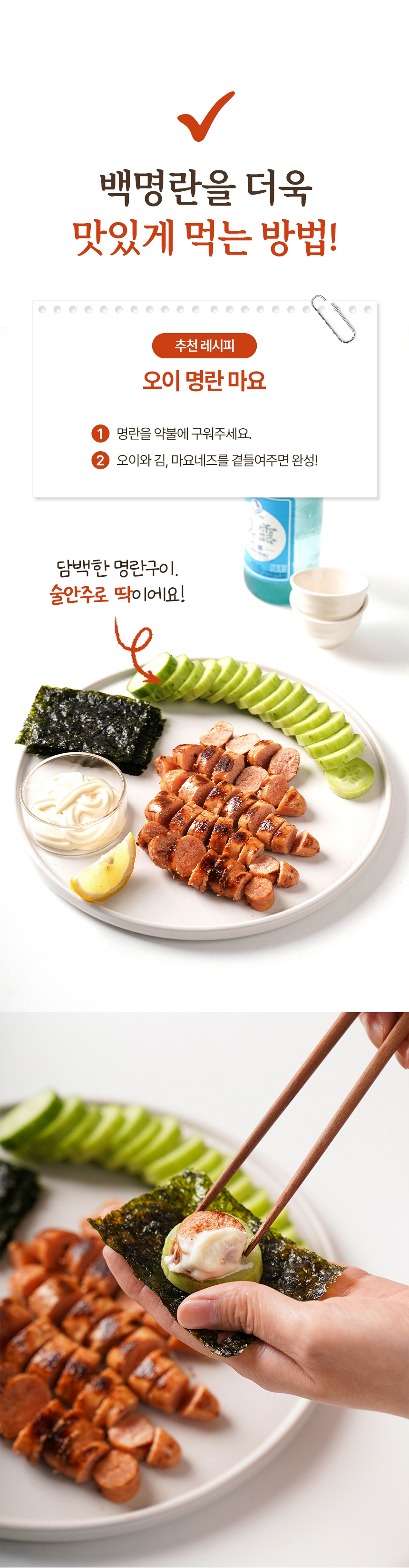 명란 비빔밥, 명란 까르보나라 등 여러 요리로 활용하여 드시면 더 맛있게 드실 수 있습니다!