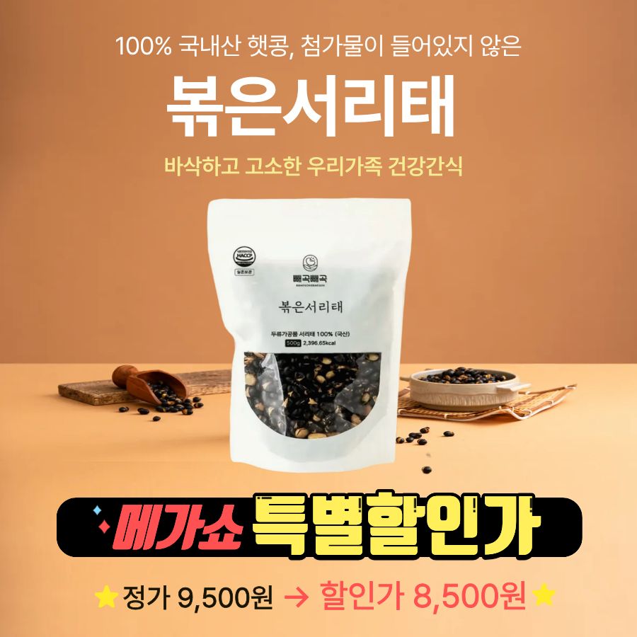 100% 국내산 서리태로 만들어 첨가물이 들어있지 않은 6단계 정성 공정과 찌고 볶아 바삭하고 소화가 잘되는 영양 듬뿍 고단백 건강 간식!