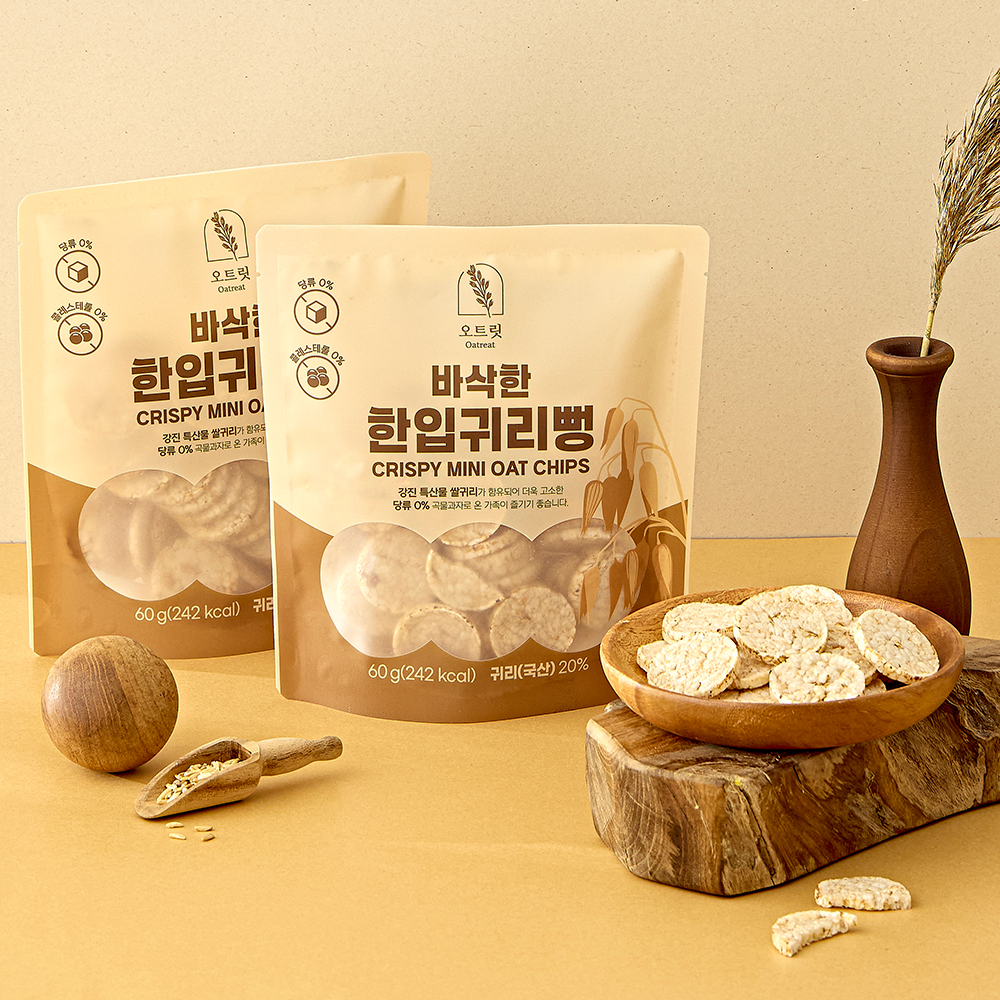 전남 강진 특산물인 쌀귀리가 함유되어 더욱 고소하고, 당•밀가루 제로 건강 간식으로 온 가족이 즐기기 좋습니다. 귀리김부각 외에도 한입귀리뻥과 오트쉐이크까지 만나보세요!