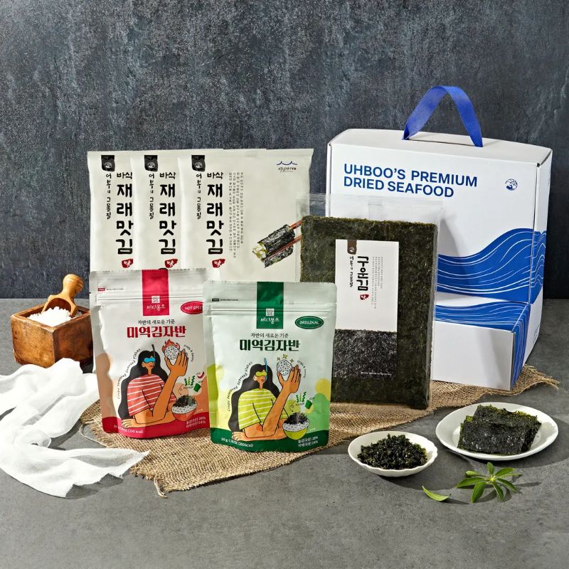 매일 먹는 김, 특별하게 즐기세요. 어부의 그물질 ‘올인원 김 선물세트’는 다양한 맛과 구성으로 실속 있는 선물입니다.