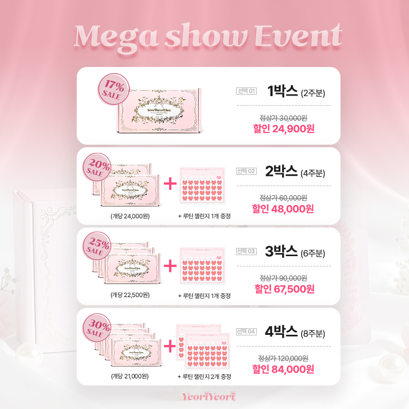 메가쇼 현장 단독 특가! 1개 40% 할인, 2개 구매시 50%까지!