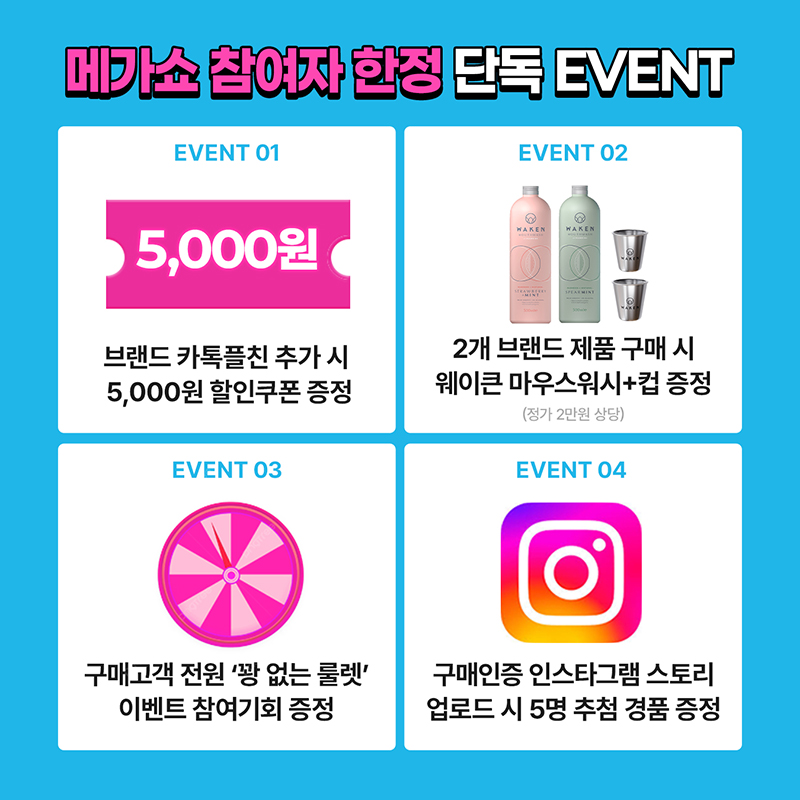 1. 방문 고객 각 브랜드 인스타그램 팔로우 시 '프레스샷 마그코어 (4만원 상당)' 일 선착순 5명 제공