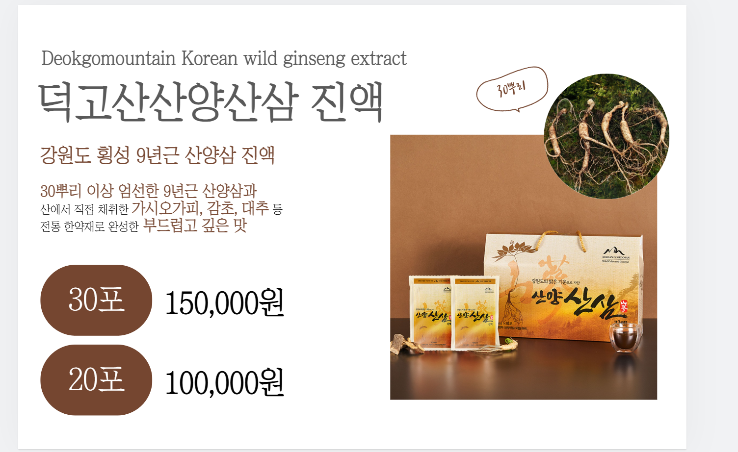 [부스번호] N402덕고산산양산삼