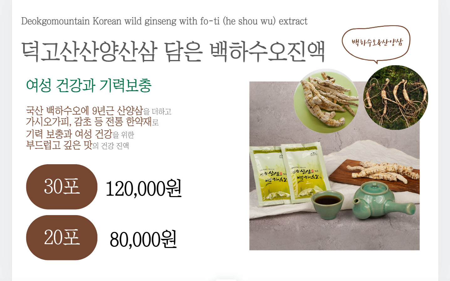 덕고산 산양산삼 담은 백하수오 진액