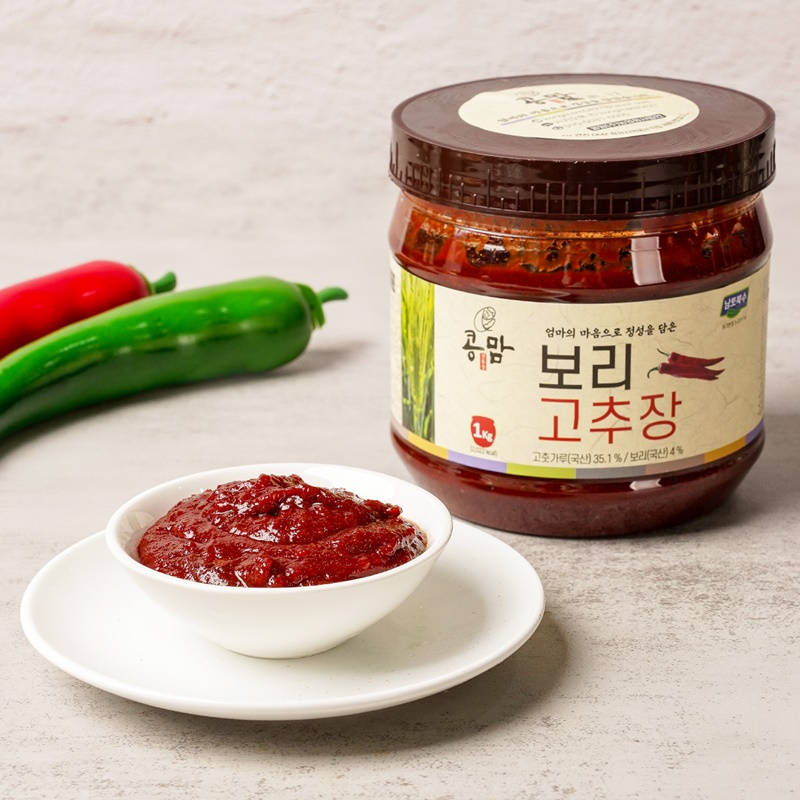 - 콩맘 보리고추장 직접 재배한 콩과 고추에 보리를 정성것 숙성 발효해 구수한 깊은 맛으로 수제 전통장입니다