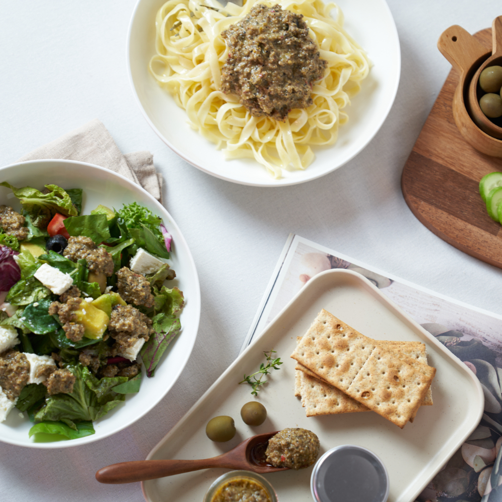 - 샐러드, 파스타, 크래커, 브레드 등 어디에 넣어도 특별한 맛을 선사하는 ‘유럽식 만능장’ 라냐 올리브페스토, 딱 한 스푼으로 멋진 유럽식 요리가 완성됩니다.