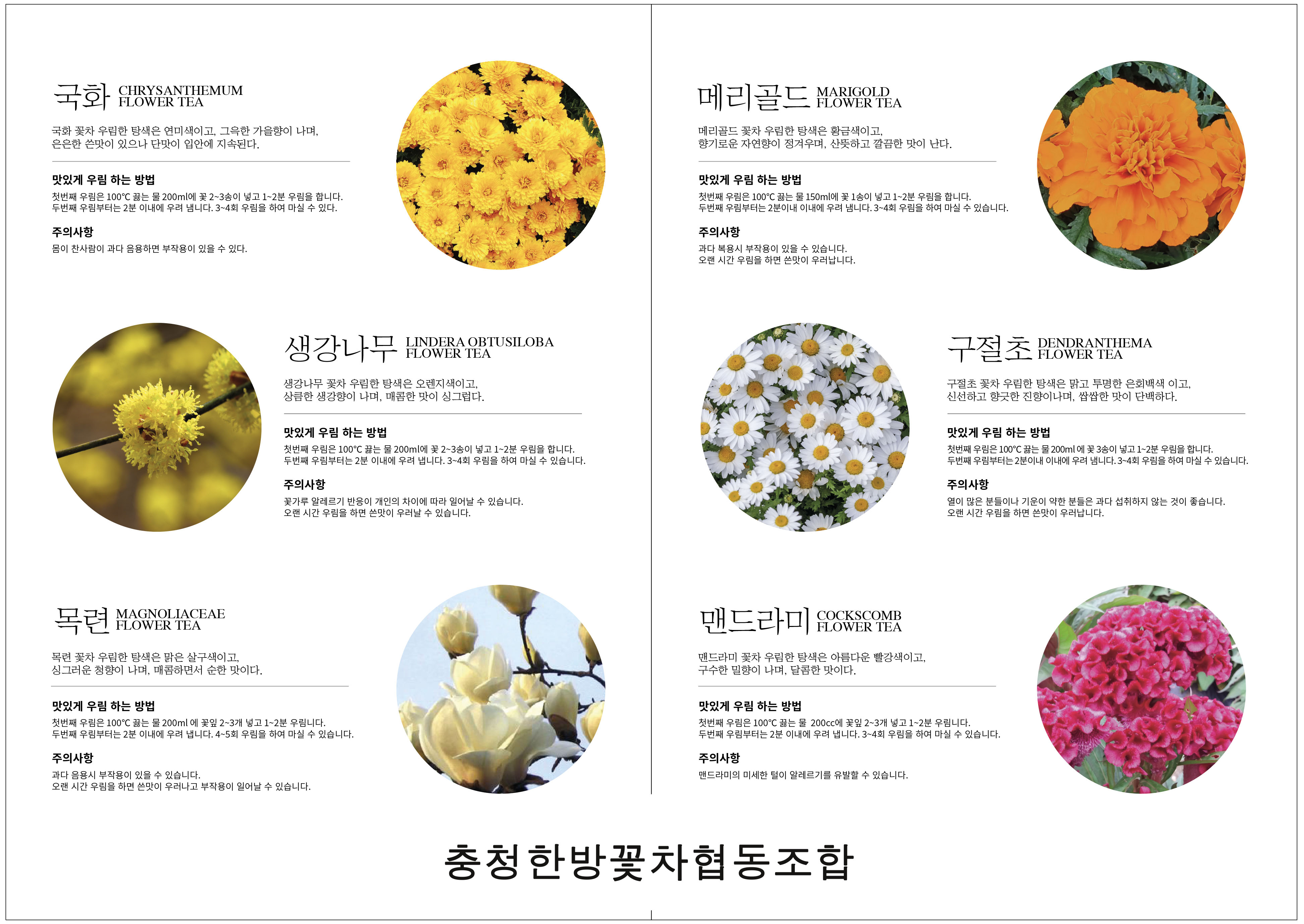 100% 국내산 꽃을 사용한 “덖음 수제차”로 1급 소믈리에 자격을 갖춘 조합원들이 농약과 제초제를 사용하지 않는 지역 농지에서 유기농 재료를 사용하고 친환경으로 직접 재배 생산! 재배 / 덖음 / 생산 전과정을 수제로 제다하는 프리미엄 제품!