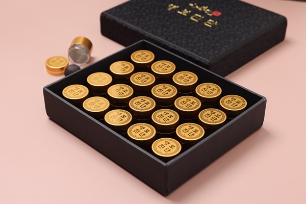 녹용분골, 침향, 산수유, 신당귀, 6년근 홍삼, 숙지황을 법제 > 건조 > 제분한 후 일등급 천연 꿀로 반죽하여 6g으로 성형한 건강환으로, 녹용과 침향 이외 재료는 국내산 사용